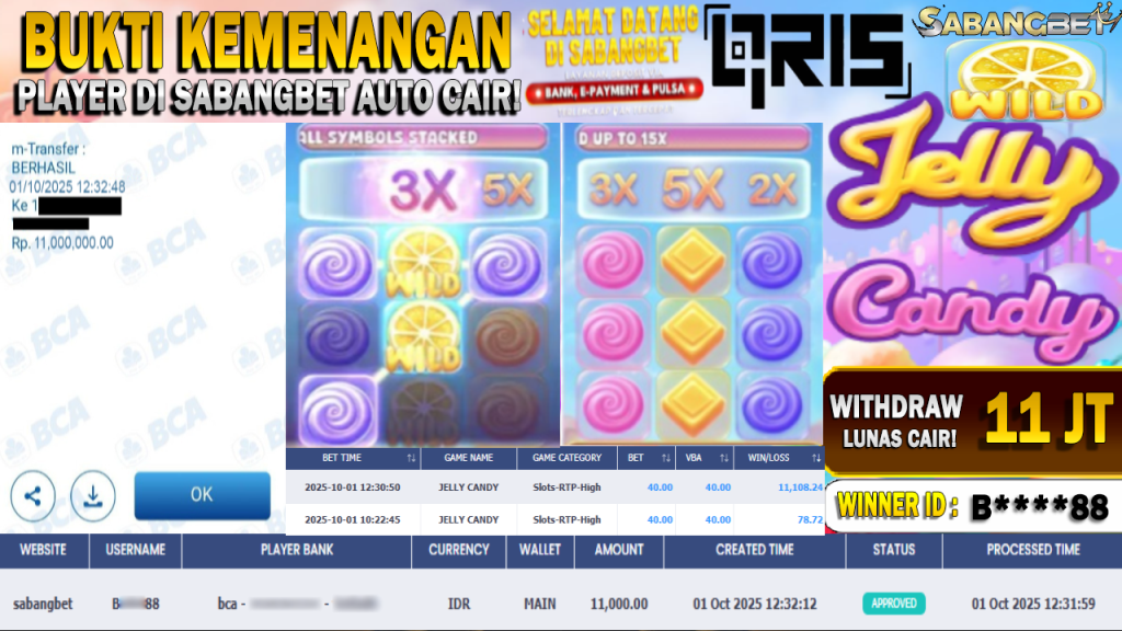BUKTI KEMENANGAN 01 OKTOBER 2025 DI GAME JELLY CANDY WD 11 JUTA