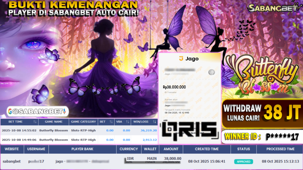 BUKTI KEMENANGAN 08 OKTOBER 2025 DI GAME BUTTERFLY BLOSSOM WD 38 JUTA