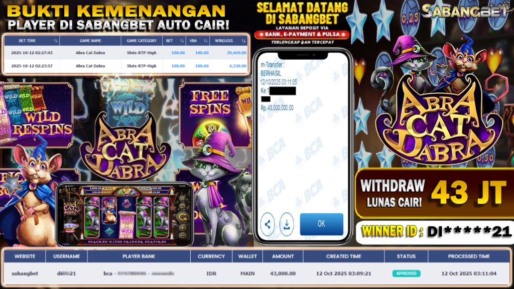 BUKTI KEMENANGAN 12 OKTOBER 2025 DI GAME ABRA CAT DABRA WD 43 JUTA