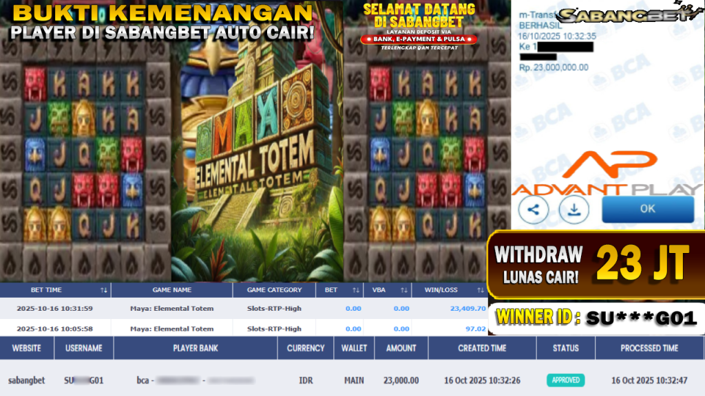 BUKTI KEMENANGAN 16 OKTOBER 2025 DI GAME MAYA: ELEMENTAL TOTEM WD 23 JUTA