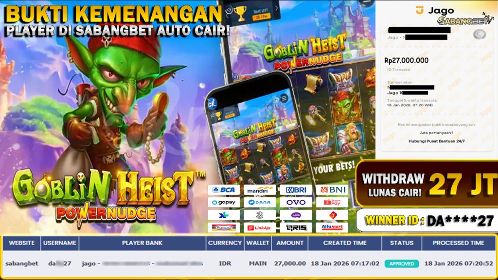 BUKTI KEMENANGAN 18 JANUARI 2026 DI GAME GOBLIN HEIST POWERNUDGE WD 27 JUTA