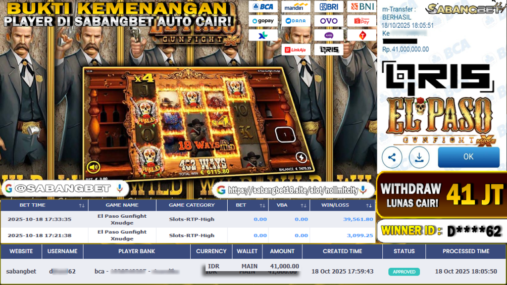 BUKTI KEMENANGAN 18 OKTOBER 2025 DI GAME EL PASO GUNFIGHT XNUDGE WD 41 JUTA
