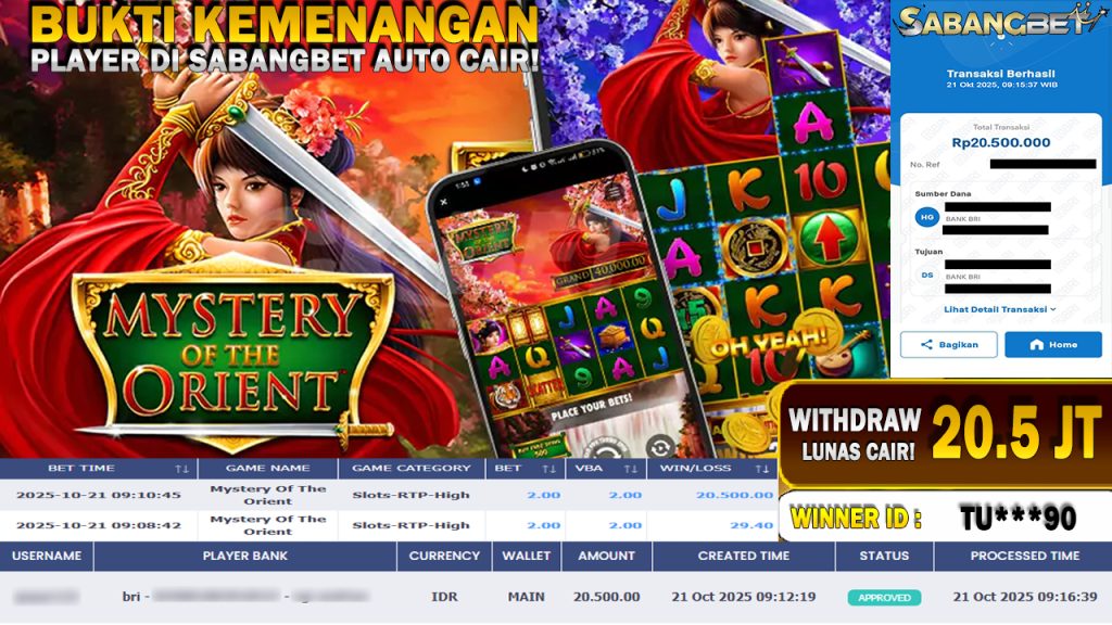 BUKTI KEMENANGAN 21 OKTOBER 2025 DI GAME Mystery Of The Orient WD 20.5 JUTA