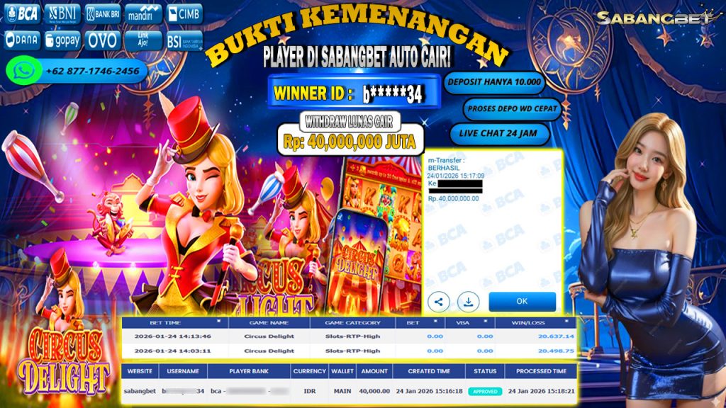 BUKTI KEMENANGAN 24 JANUARI 2026 DI GAME CIRCUS DELIGHT WD 40 JUTA