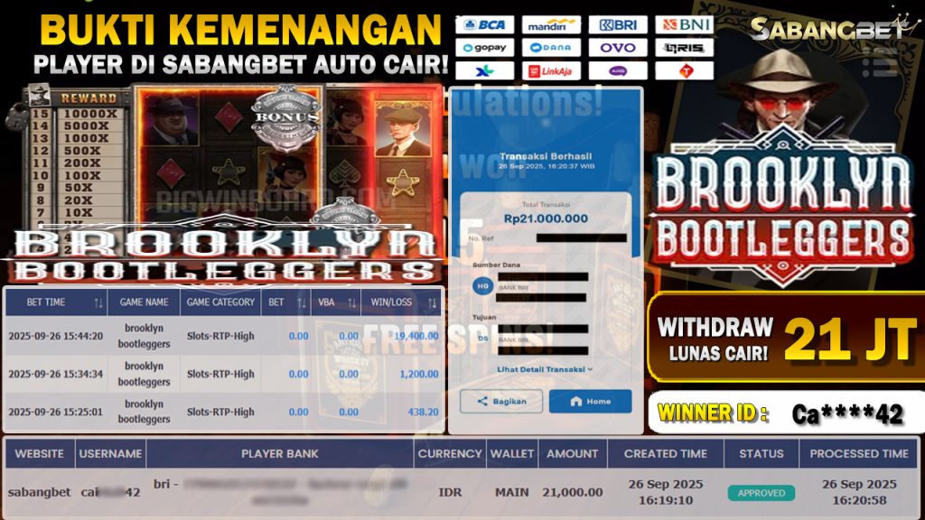 BUKTI KEMENANGAN 26 SEPTEMBER 2025 DI GAME BRIIKLYN BOOTLEGGERS WD 21 JUTA