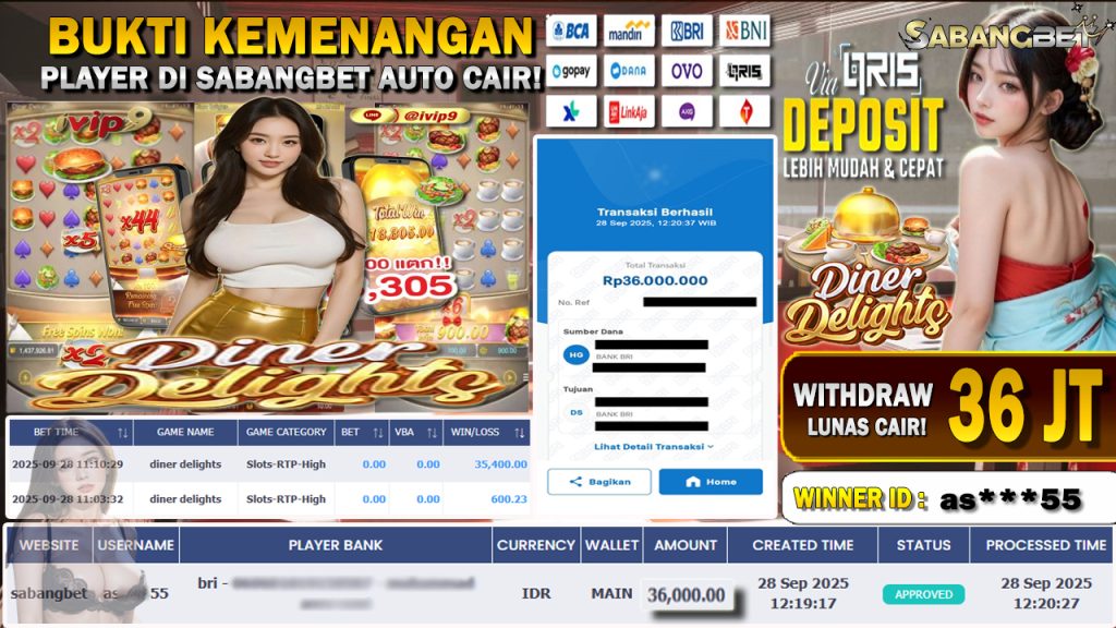 BUKTI KEMENANGAN 28 SEPTEMBER 2025 DI GAME DINER DELIGHTS WD 36 JUTA