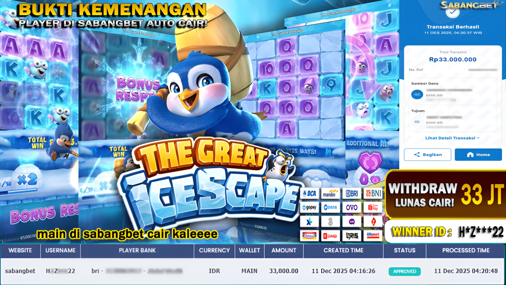 BUKTI KEMENANGAN 11 OKTOBER 2025 DI GAME THE GREAT ICESCAPE WD 36 JUTA