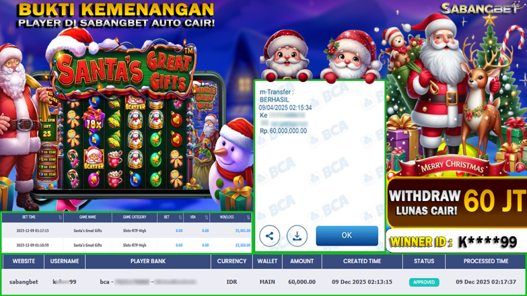 BUKTI KEMENANGAN 25 JUNI 2025 DI GAME SANTA’S GIFT RUSH WD 22 JUTA