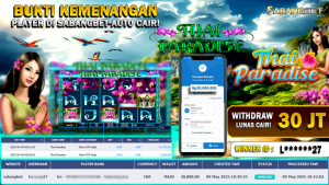 BUKTI KEMENANGAN 9 MEI 2025 DI GAME THAI PARADISE WD 30 JT