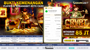 BUKTI KEMENANGAN 11 MEI 2025 DI GAME RAIDER JANE’S CRYPT OF FORTUNE PG SOFT WD 85 JUTA