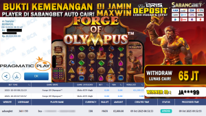BUKTI KEMENANGAN 09 OKTOBER 2025 DI GAME FORGE OF OLYMPUS WD 65 JUTA