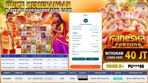 BUKTI KEMENANGAN 09 OKTOBER 2025 DI GAME GANESHA FORTUNE WD 40 JUTA