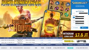 BUKTI KEMENANGAN 12 SEPTEMBER 2025 DI GAME legend of hou yi WD 17.5 JUTA