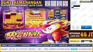 BUKTI KEMENANGAN 15 JANUARI 2026 DI GAME FORTUNE RABBIT WD 65 JUTA