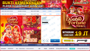 BUKTI KEMENANGAN 28 AGUSTUS 2025 DI GAME DOUBLE FORTUNE WD 19 JUTA