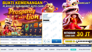 BUKTI KEMENANGAN 29 AGUSTUS 2025 DI GAME PROSPERITY LION WD 30 JUTA