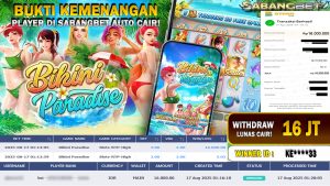 BUKTI KEMENANGAN 17 AGUSTUS 2025 DI GAME BIKINI PARADISE WD 16 JUTA