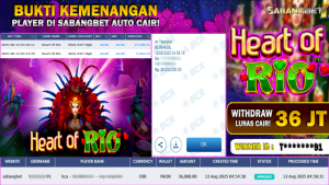 BUKTI KEMENANGAN 12 AGUSTUS 2025 DI GAMEHEART OF RIO WD 36 JUTA