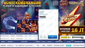 BUKTI KEMENANGAN 25 JULI 2025 DI GAME CASH VOLT WD 16 JUTA