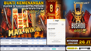 BUKTI KEMENANGAN 30 JULI 2025 DI GAME BUSHIDO WAYS XNUDGE WD 26 JUTA