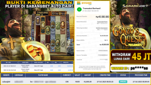 BUKTI KEMENANGAN 27 OKTOBER 2025 DI GAME GONZO’S QUEST MEGAWAYS WD 45 JUTA
