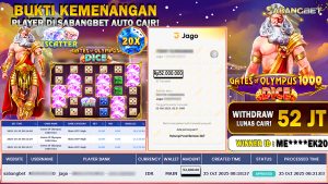 BUKTI KEMENANGAN 25 OKTOBER 2025 DI GAME GATES OF OLYMPUS 1000 DICE WD 52 JUTA