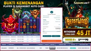 BUKTI KEMENANGAN 26 OKTOBER 2025 DI GAME BEASTWOOD PLAYTECH SLOT WD 45 JUTA