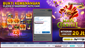 BUKTI KEMENANGAN 20 DESEMBER 2025 DI GAME Mask Carnival WD 20 JUTA