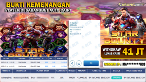 BUKTI KEMENANGAN 04 JULY 2025 DI GAME STAR BOUNTY WD 41 JUTA