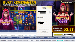 BUKTI KEMENANGAN 02 JULY 2025 DI GAME WITCHES NIGHT WD 51 JUTA