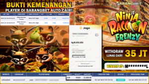 BUKTI KEMENANGAN 02 JULI 2025 DI GAME NINJA RACOON FRENZY WD 35 JUTA