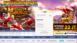 BUKTI KEMENANGAN 25 JUNI 2025 DI GAME SANTA’S GIFT RUSH WD 22 JUTA