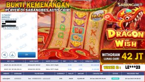 BUKTI KEMENANGAN 20 JUNI 2025 DI GAME DRAGON WISH SPADEGAMING WD 42 JUTA