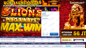 BUKTI KEMENANGAN 19 JUNI 2025 DI 5 LIONS MEGAWAYS WD 56 JUTA
