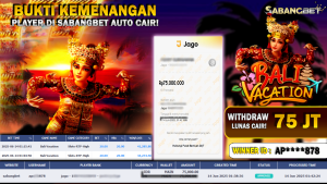 BUKTI KEMENANGAN 14 JUNI 2025 DI GAME BALI VACATION WD 75 JUTA
