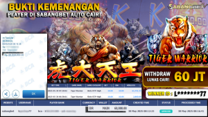 BUKTI KEMENANGAN 30 MEI 2025 DI GAME TIGER WARRIOR WD 60 JUTA