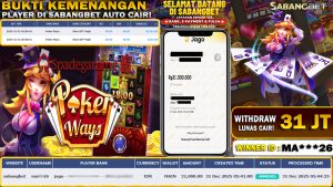 BUKTI KEMENANGAN 31 DESEMBER 2025 DI GAME POKER WAYS WD 31 JUTA