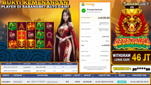 BUKTI KEMENANGAN 16 OKTOBER 2025 DI GAME LEGENDARY5 WD 46 JUTA