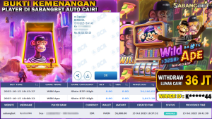 BUKTI KEMENANGAN 15 OKTOBER 2025 DI GAME WILD APE WD 36 JUTA